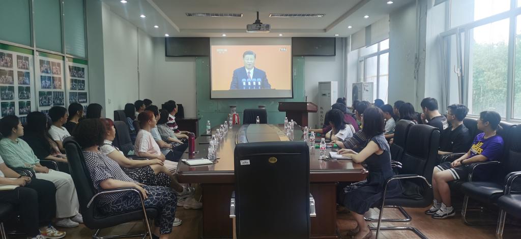 6月29日上午,云顶国际8588yd组织师生观看“七一勋章”颁授仪式直播并学习习近平总书记重要讲话,公司党委中心组成员在学校主会场观看直播,学院读书班其他成员、行政党员以及员工各支部党员代表在学院会议室观看直播。