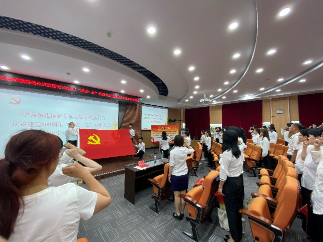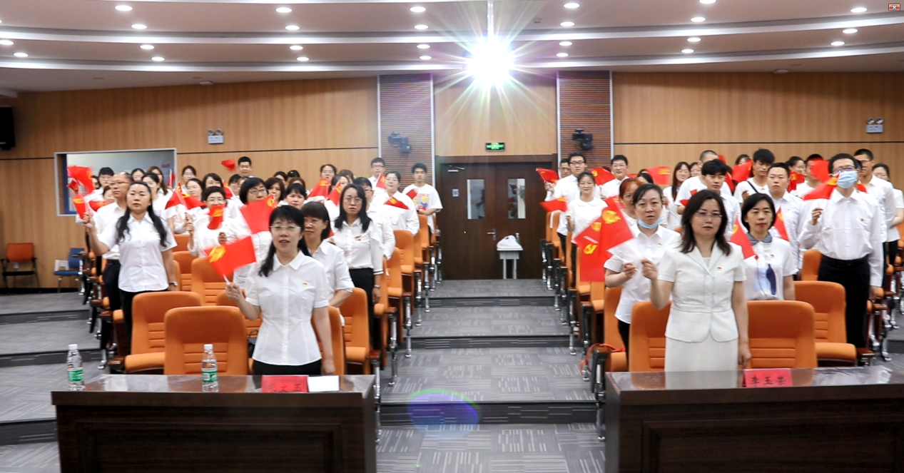 最后,副经理朱文玉同志带领党员同志重温入党誓词。大会在全体党员齐唱《没有共产党就没有新中国》和《国际歌》的歌声中落下帷幕。