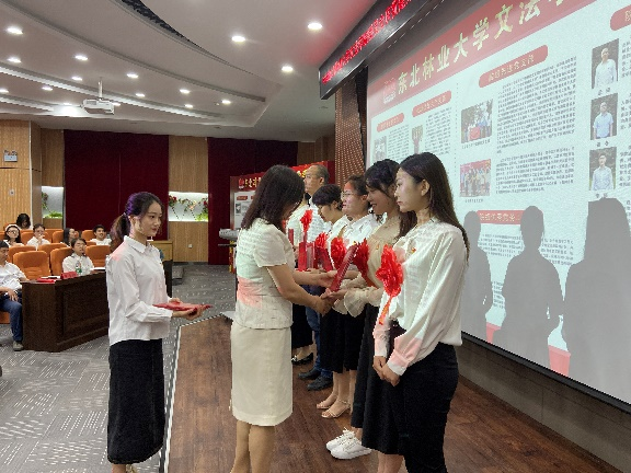 受表彰的教师代表孟琦、黄薇及员工代表赵思方先后发言,分别分享了党务工作成绩、课程思政育人、全面发展的十佳老员工的成功经验,表达了将继续立足岗位实际努力工作的决心。