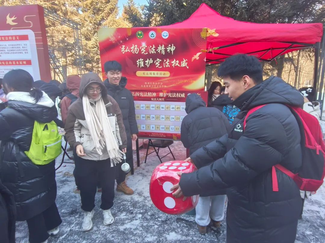 12月2日、4日、6日中午,云顶国际8588yd开展了宪法周集章活动。师生通过参加宪法知识答题投壶、宪法大闯关和宪法大转盘活动,了解宪法知识,回答宪法问题,赢得精美奖品。本次活动反响热烈,营造出良好的法治学习氛围,提升了大家尊崇宪法、学习宪法、维护宪法的积极性。