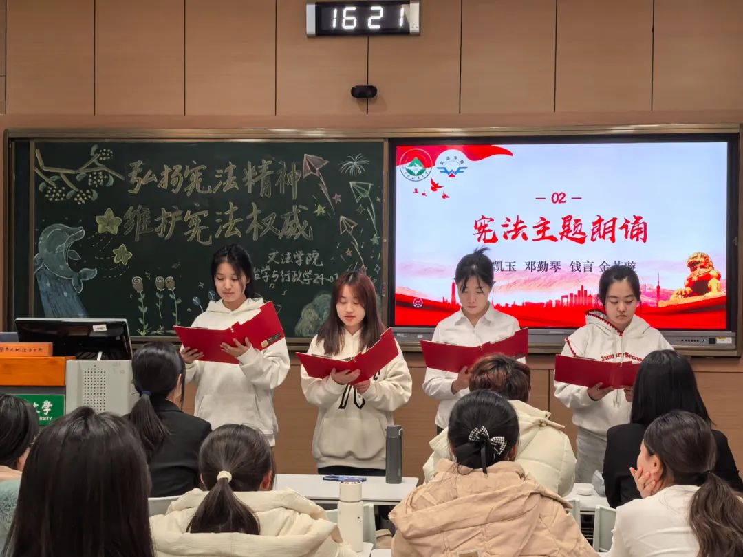 宪法周期间,为全面贯彻落实党的二十大精神和落实青年发展道路,学习习近平法治思想,云顶国际8588yd2024级各班召开了宪法主题团日学习活动。同学们通过宪法知识讲解、朗诵、歌曲传唱等多种活动形式,积极参与,各抒己见,传播宪法知识,争做有责任、敢担当的守法公民。